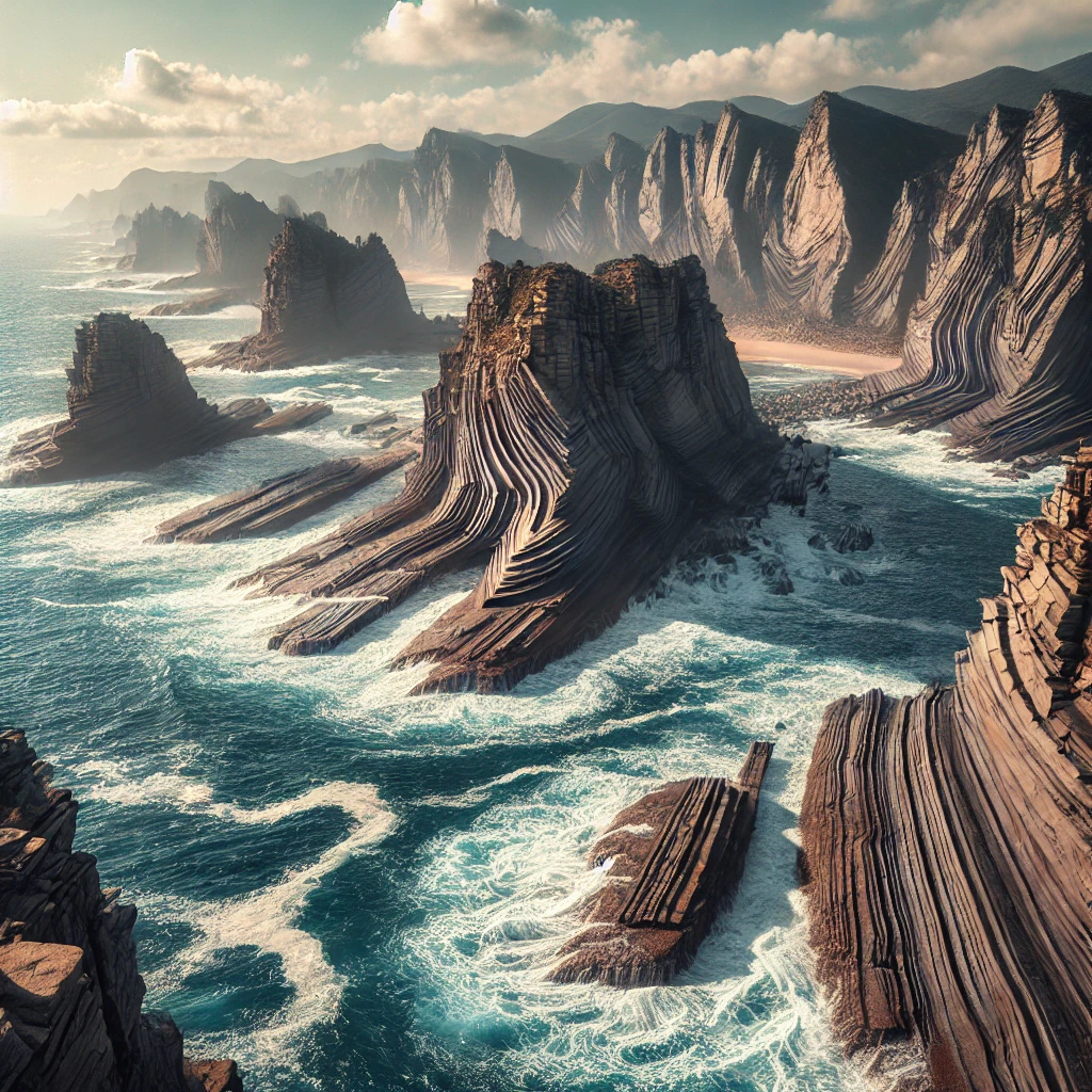 특징: 용암이 빠르게 식으면서 생성된 다각형 기둥 형태의 절벽.